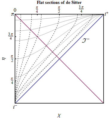 • Find the range of values spanned by conformal time $\tilde{\eta}$ and comoving distance $\tilde{\chi}$ in the flat de Sitter space
