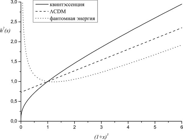 Plot the dependencies $h(x)=H(x)/H_0(x)$, where $x=1+z$, in the SCM, for quintessence and for phantom energy cases.