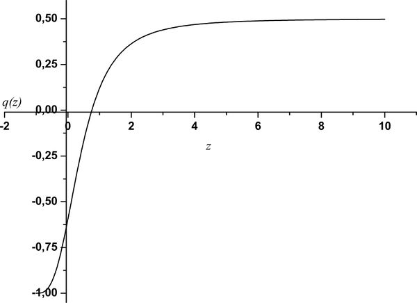 Find the redshift dependence of the deceleration parameter. Analyze the limiting cases.