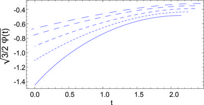 Show that the exponentially decaying scalar field \[ \varphi(t) = \varphi_0 e^{-\omega t} \] can give rise to unstable end points of the evolution.